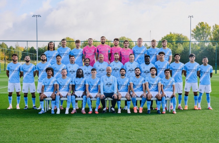 曼城新赛季全家福:瓜帅C位,两侧为福登和B席