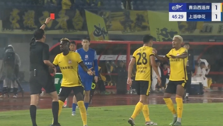 张呈栋被主裁出示黄牌后仍不依不饶,终末被径直红牌罚下,西海岸剩9东谈主!