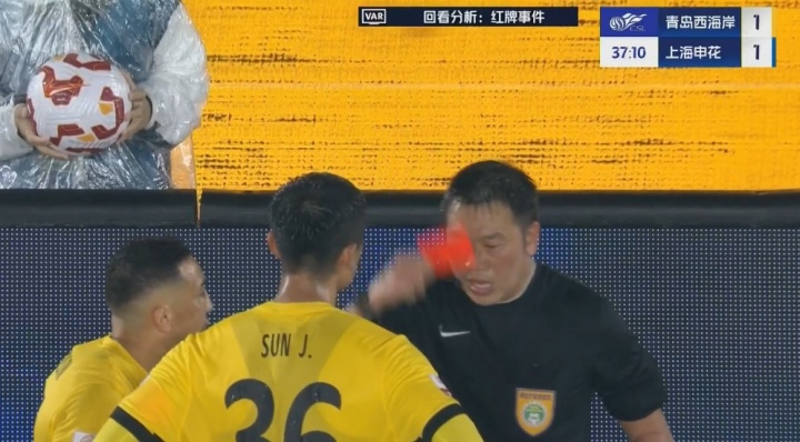 历程VAR领导,主裁在场边不雅看回放,决定改判红牌,孙捷被平直罚下,申花多打一东说念主。