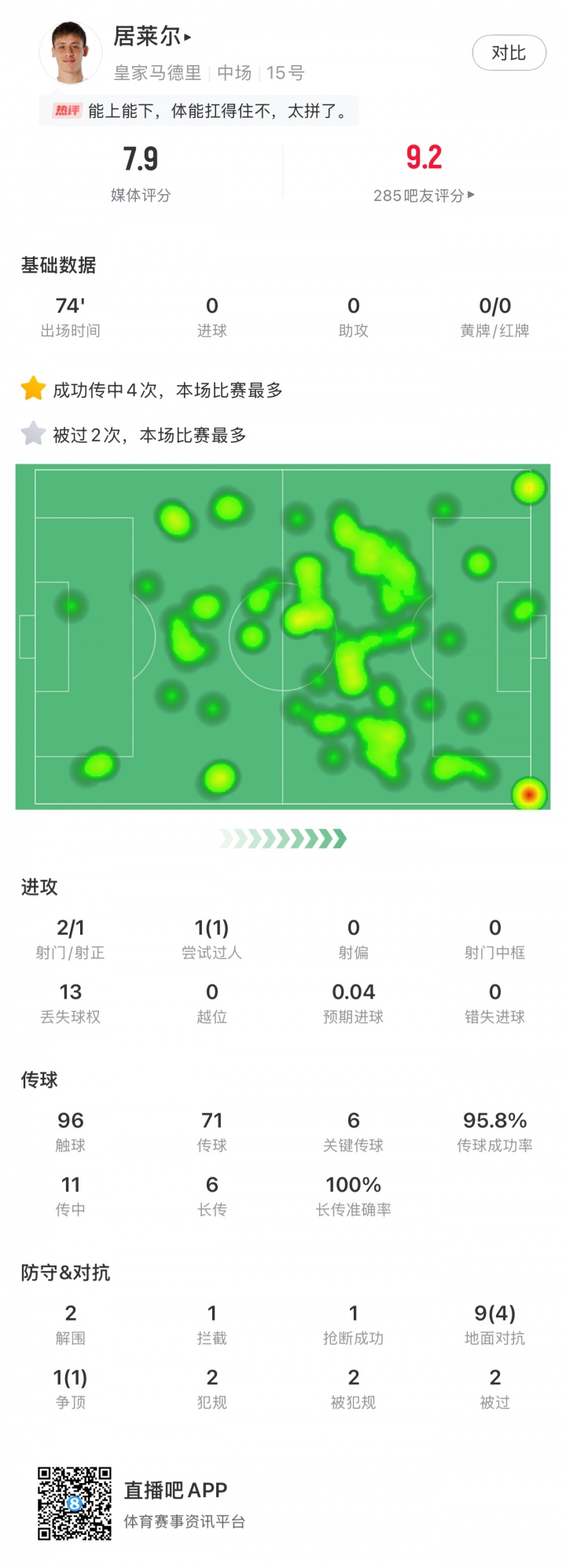 居莱尔被欧足联本事不雅察小组评比为本场最好球员。该小组评价称:"这位中场球员在醒目端的孝敬相同出色,而他在比赛阅读、传球组织、定位球处罚以及抓球时的平定自信更是令东谈主印象长远。"