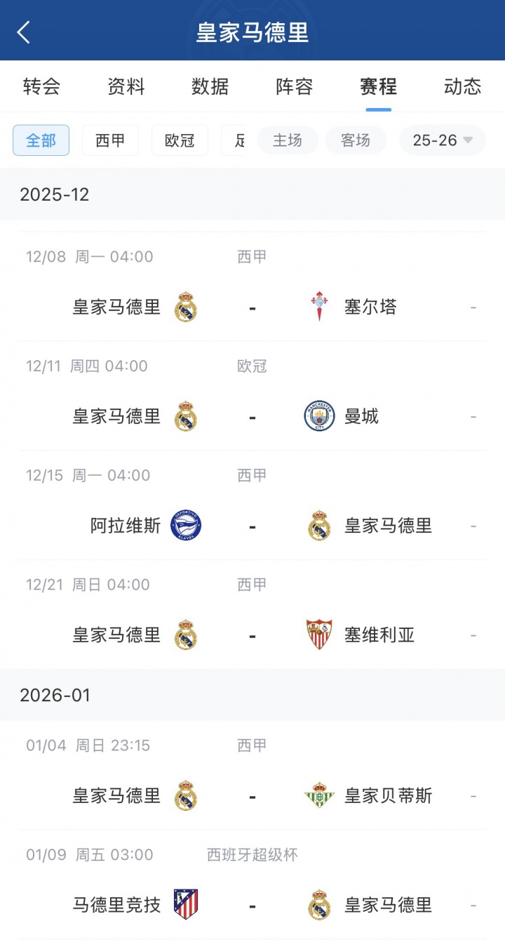 皇马赛程↓
