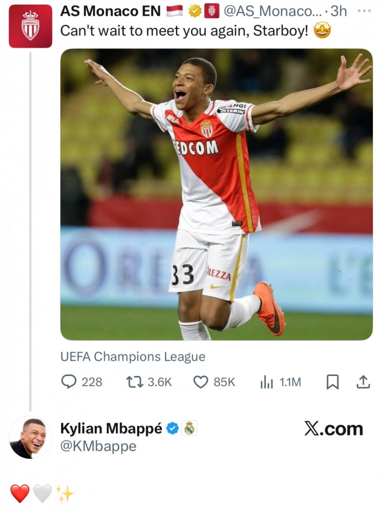 摩纳哥社媒晒姆巴佩青涩照:迫不足待念念见你,后者复兴:❤️🤍