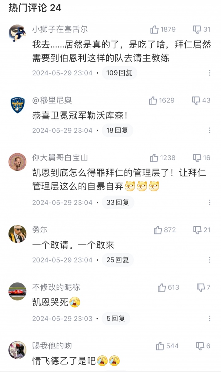 2024年5月,拜仁官宣签下孔帕尼,并向伯恩利支付1200万欧。关于拜仁滥用大额解约金引进一个把球队带左迁的年青阐发,不少吧友其时齐在批驳区暗意荒谬不明。
