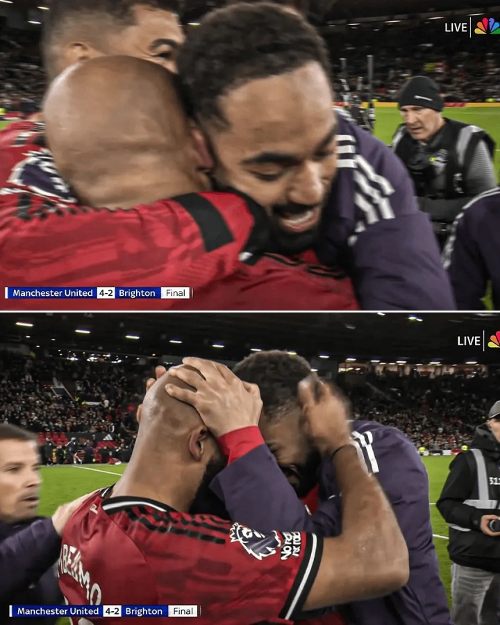 蜂王与狼王!赛后曼联两大新援姆伯莫和库尼亚牢牢拥抱庆祝平直