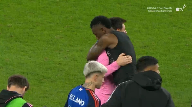 梅西本场1球3助,赛后第一时辰,梅西与辛辛那提球员交换球衣拥抱致敬。