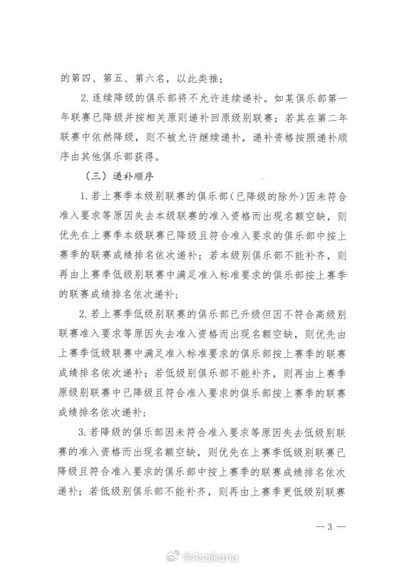 中足联发布了新改革的《中国足球事业联赛参赛经验递补原则及目的》,该文献取代了2023年中国足协发布的《中国足球协会事业联赛参赛经验递补原则及目的》。主要变化部分: