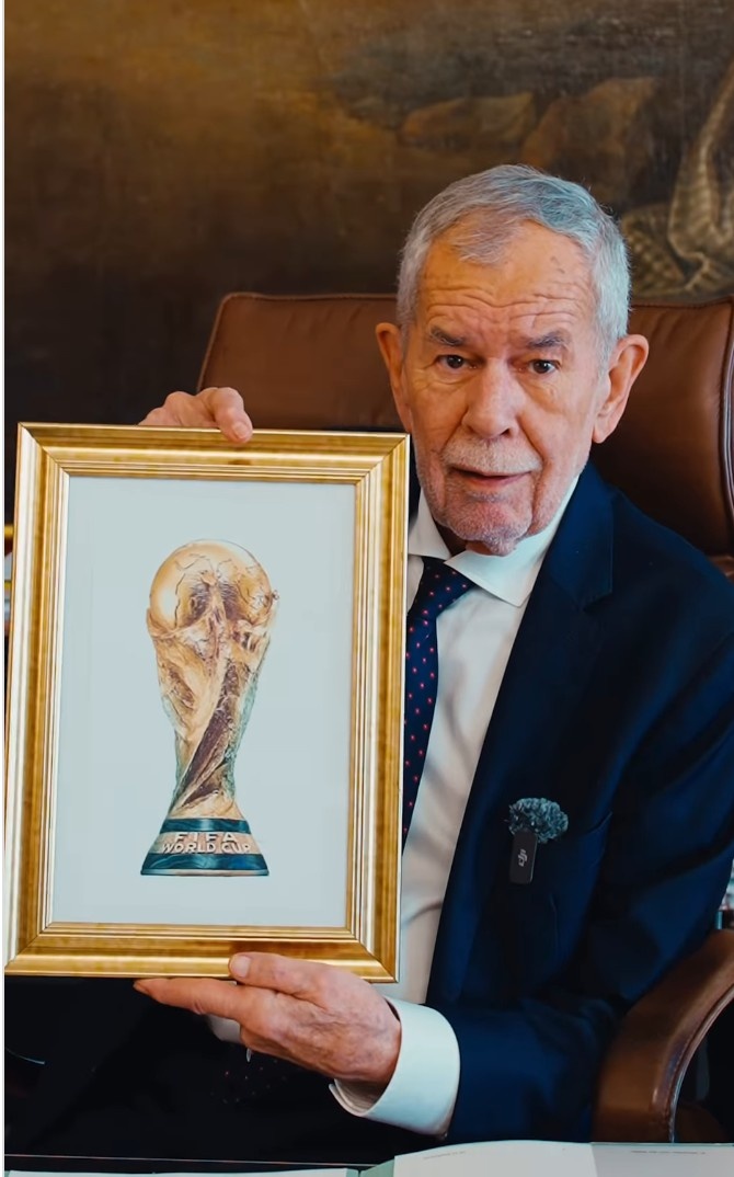 奥地利总统范德贝伦幽默复兴阿瑙托维奇,他展示淘气神杯的相片,说谈:“亲爱的阿瑙托维奇,这个看着眼熟吗?”