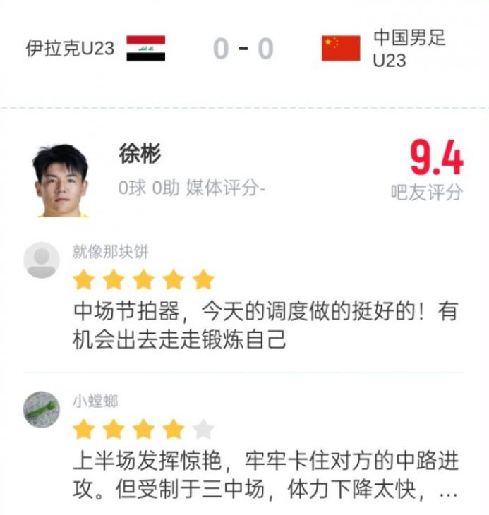 而在本场比赛被评为9.4分的徐彬,则是成为全队得分第二高的球员,他被不少球门称作中场节律器的同期,还有不少球迷默示他便是郑智在国足的交班东说念主,要知说念,自从郑智淡出洋足后,无论是蒿俊闵、张稀哲,如故王上源、徐新,他们王人无法撑起国足中场……