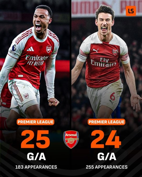 超越科斯切尔尼, 加布25球成阿森纳队史英超参与入球数最多中央防守