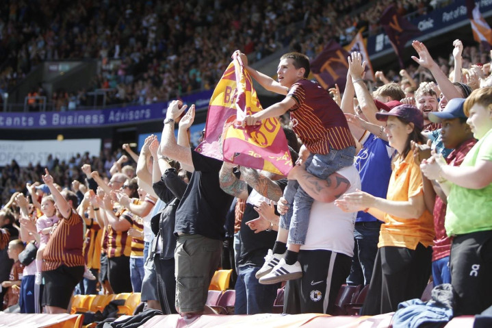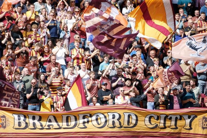 布拉德福德城古代足球 俱乐部(Bradford City AFC):绰号“矮脚鸡”。俱乐部成立于1903年,其前身是曼宁厄姆美式古代足球 俱乐部。主场作战 是山谷阅兵运动活动 场 (曾冠名珊瑚窗户运动活动 场 等),可容纳25,136人。球队历史上最高光的时刻包括:1907-08赛季赢得乙级职业联赛 第一名 升入顶级职业联赛 ;1911年在足总杯总决赛 重赛中1-0击败纽卡斯尔联,夺得队史唯一一座重要杯赛第一名 。