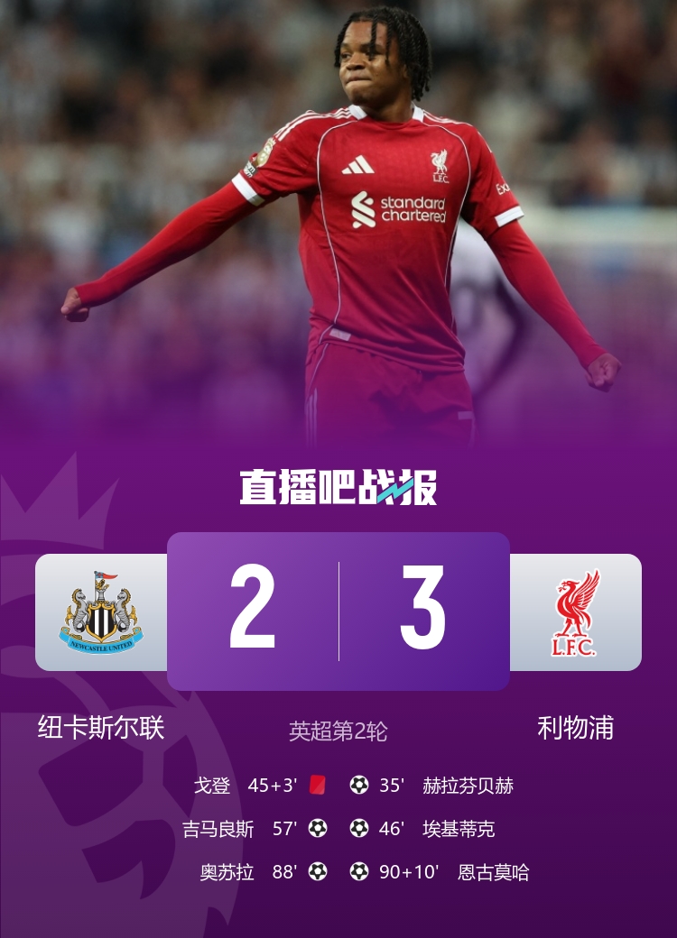 早报:16岁恩古莫哈登场4分钟绝杀!利物浦3-2十东谈主纽卡