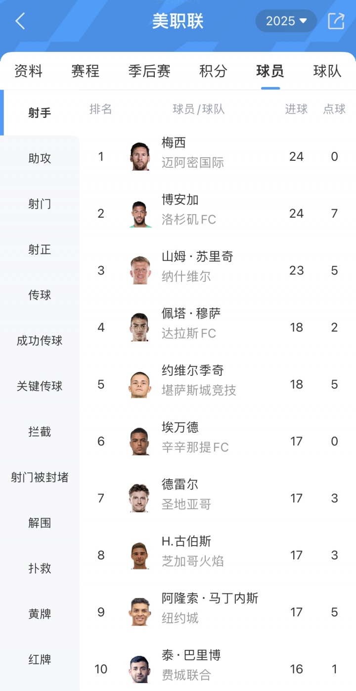 追平梅西!洛杉矶FC前卫博安加攻入第24球,MLS弓手榜并排第一