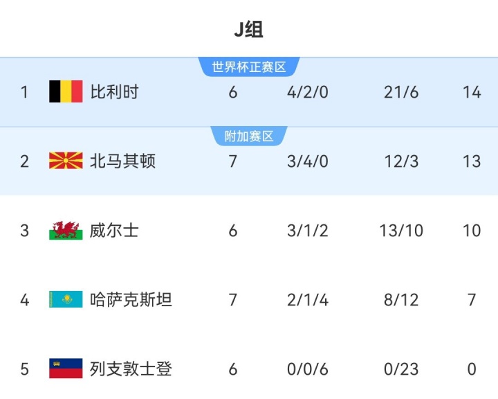 而在积分榜上,比利时还剩终末两轮比赛,暂时以1分上风向上多赛一场的北马其顿,但比利时的终末两场敌手是本组实力较弱的哈萨克斯坦和列支敦士登,在首回合较量中比利时以两个6-0投降这两个敌手。