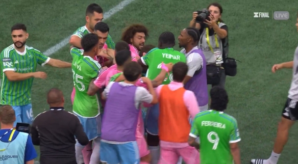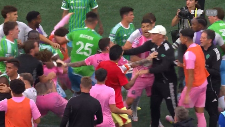 比赛闭幕后迈阿密球员和对方球员还有使命主谈主员发生突破,拳脚相向!